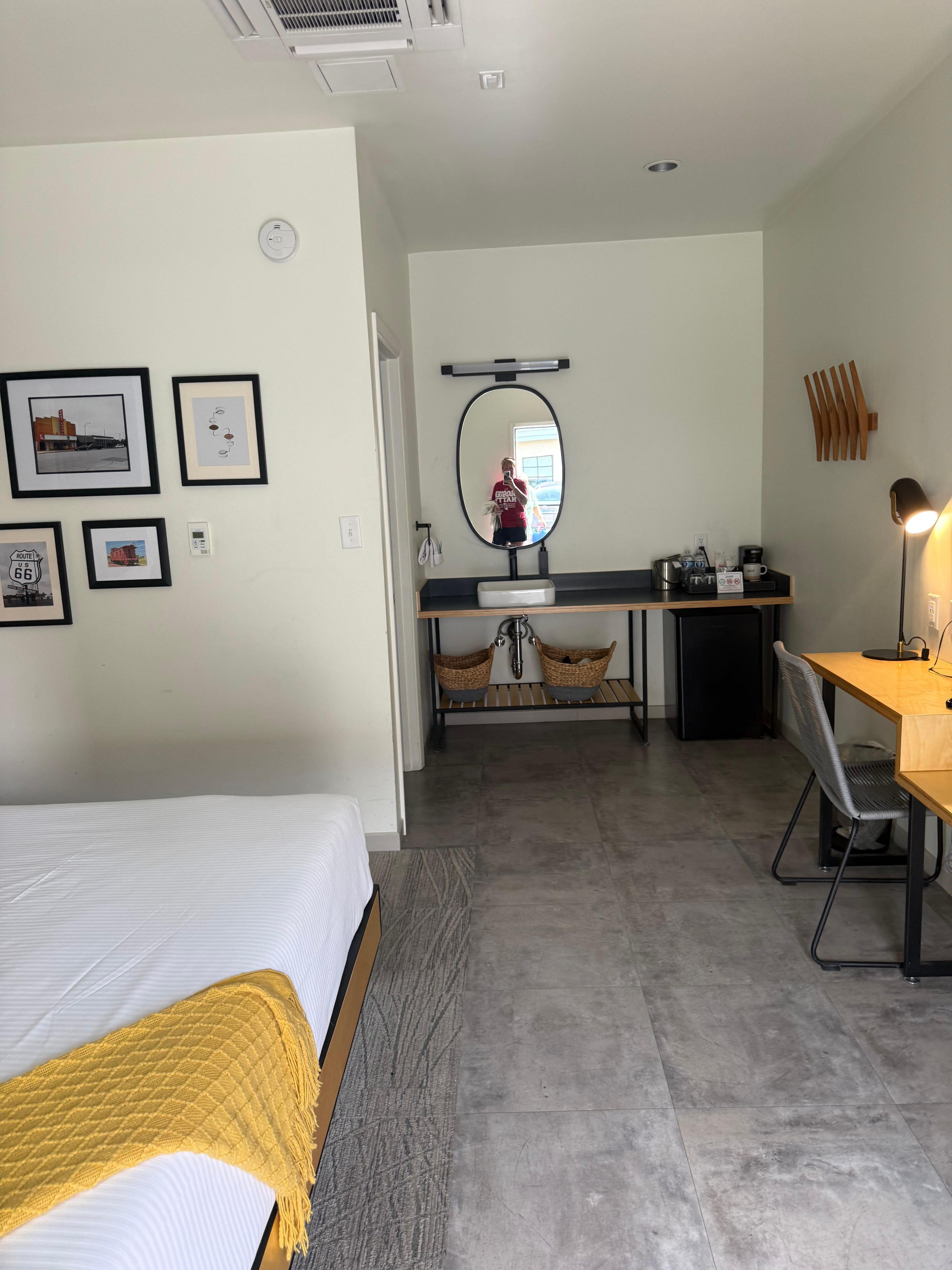 Staff, amenities, cleanliness, and location all excellent. Five minute walk to Old Town; added bonus actually on Route 66! Cute, modern renovated motel with bar, great to hang out in morning or night.