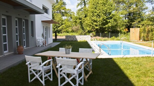 Casa de huéspedes en Aristotelis con piscina al aire libre y bar junto a la piscina