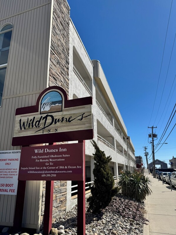 The suite at the Wild Dunes was clean and comfortable. Also, onsite parking is available. Within the suite a small kitchenette with a 2 burner stovetop, microwave and refrigerator. Wild Dunes is at the foot of the ramp to the OC boardwalk and beach.
