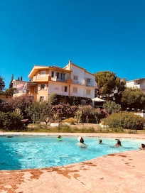 Sí, en la propiedad hay una piscina al aire libre de temporada y una piscina para niños. Se puede acceder de 08:30 a 20:00.