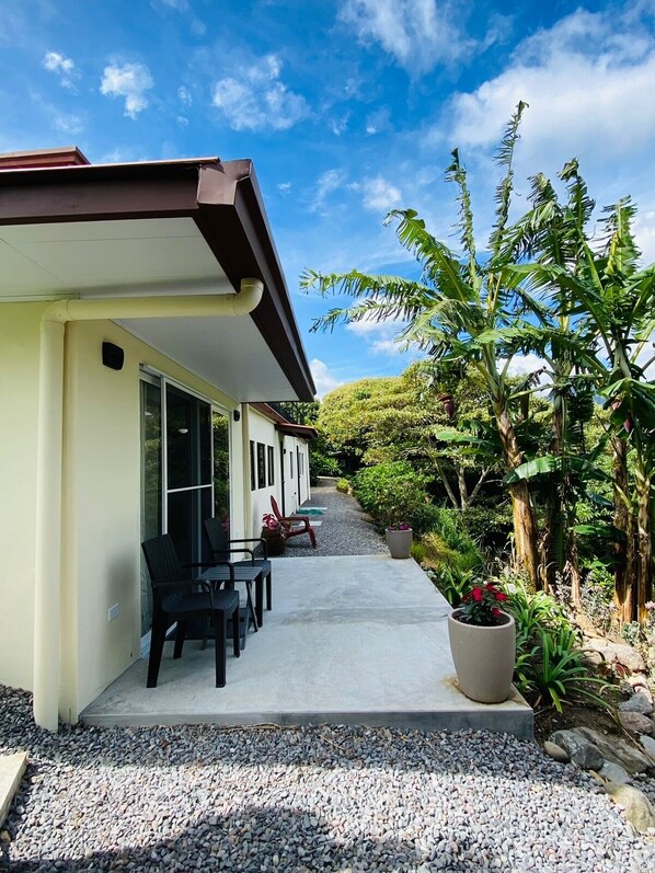 We loved our stay at this apartment. It has a well-appointed kitchen (microwave, two fridges, sink, dishes, glassware, etc), sitting area (table with two chairs, TV, cable, WI-FI, bedroom (dresser, closet, nightstands, lamps with AC and USB connections in case you forgot your charging block!) and bathroom (shower, toilet, sink). Everything was in great shape and the apartment had only been renting for a month before we arrived (Feb 2023). The owner (Gerald) was friendly, helpful and personable and made some dining recommendations - RetroGusto and others. He asked if there was anything he could add and we suggested a night light. He delivered on the same day! There are sliding glass doors that lead to a patio with chairs and a grill. The views of the mountains and greenery are breathtaking. There are banana and orange trees on the property and we had one of his delicious oranges as a pre-breakfast. You can drive there as we did in a rental car (the owner gave us a remote to open the gate) or you can cab into town for $3-4. The owner provided us the name and number of two english speaking cab drivers. You could walk to town for exercise but we did enough hiking to waterfalls, etc. that we didn't need any extra exercise. We really enjoyed it and look forward to staying there again.