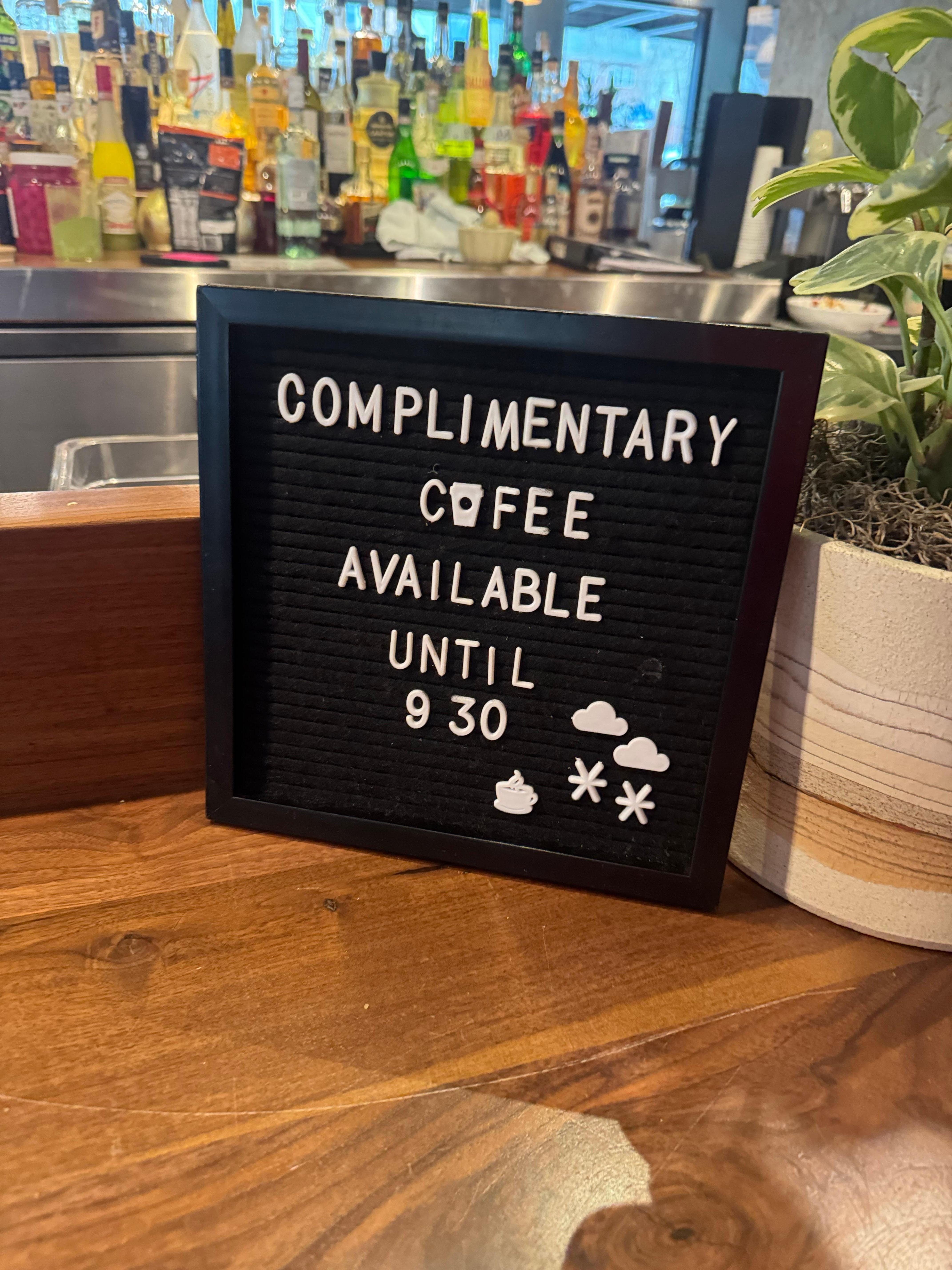No breakfast bar, unless you paid for it I guess....coffee was great.