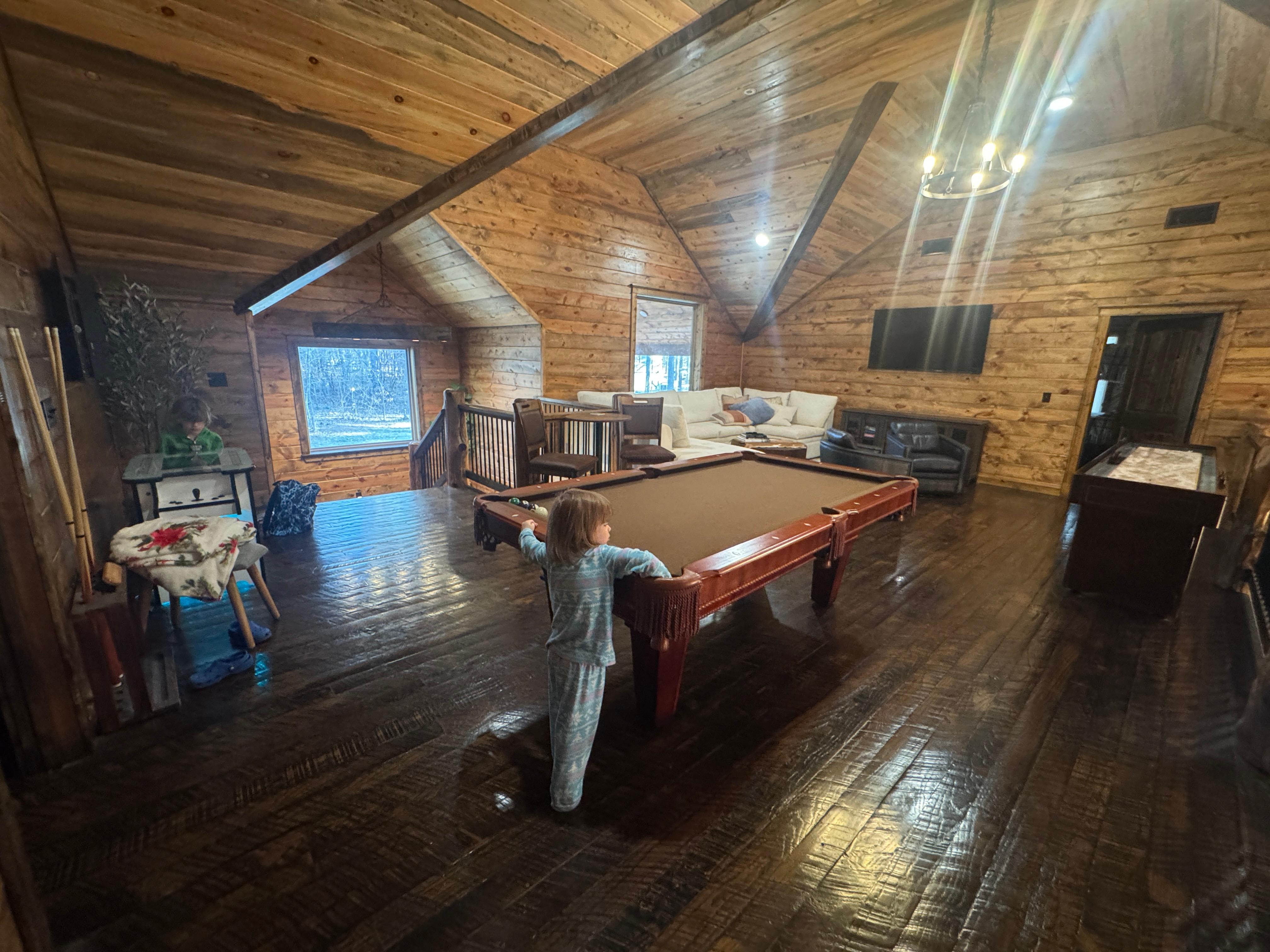 This was by far the most beautiful house and property I have stayed at to date. I wanted to live here. The interior was beautiful with 4 master bedrooms and since we had 4 couples, it did not leave anyone wanting for more. Also, we had 11 kids who had a great time all bunking together in the kids lift. The back deck was spectacular. This was where i spent most of my time. There was an inner area with TV and grill, and chairs, and outer deck with ping pong, cornhole, swings, tables for outdoor dining, and a large hot tub. The swings on the creek side was my favorite peaceful spot. I could have stayed there all day. The kids had fun finding lizards, salamanders, and crawdads in and near the creek, and there was also horseshoes to play. I am sure the family and i will be back as i think about this place alot!! Thank you for having us. One note on items you might want to bring that were not there: cooking spray, 9x13 pan, coffee filters, foil, saran wrap, ziplock bags, kleenex, dish scrubber. There is also limitations on toilet paper so smart to bring some extra.