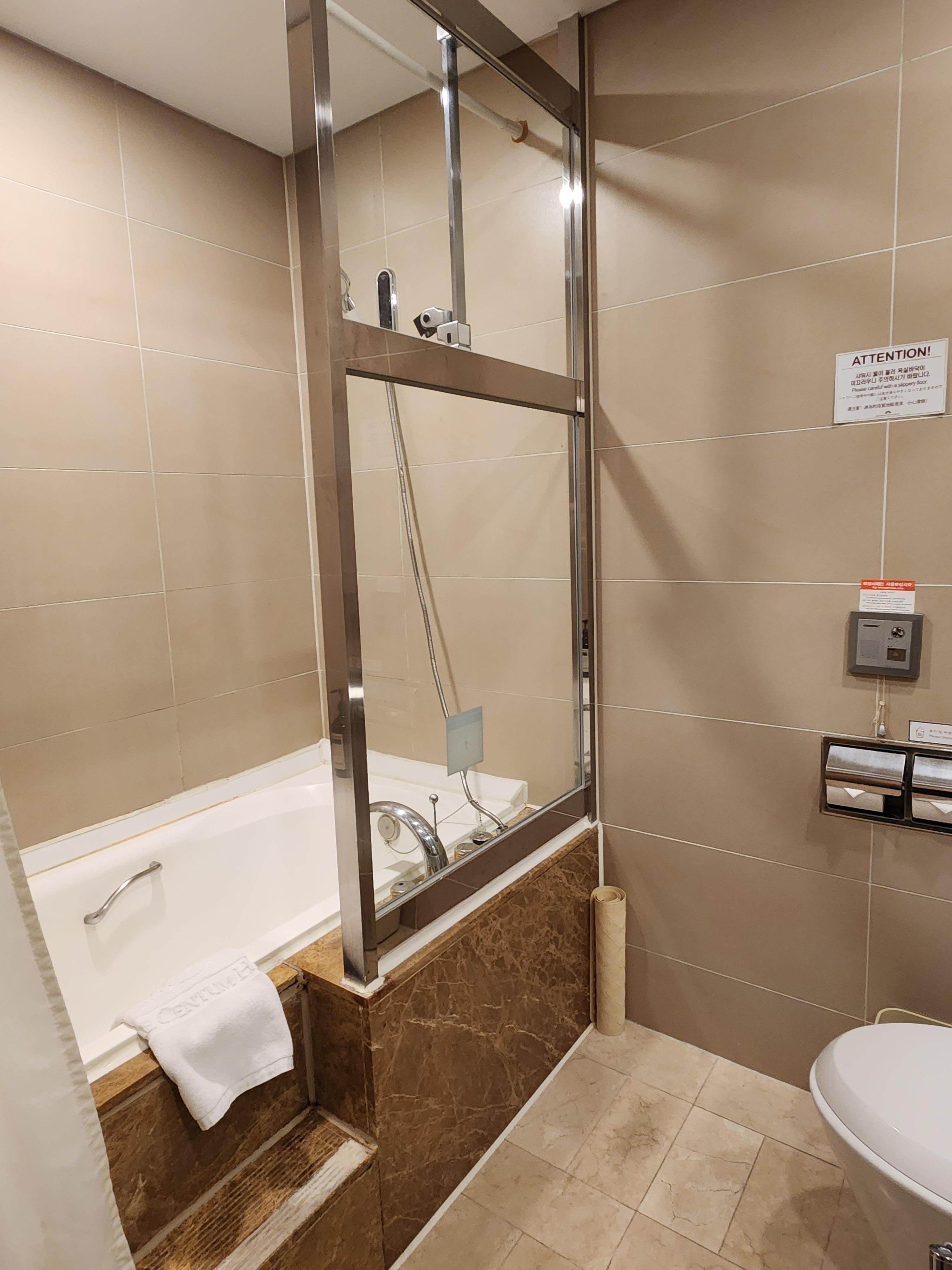 모든것은 완벽했고 단지 흠이라면 욕실이 높고 샤워시 밖으로 물이 조금 새어 나옵니다.