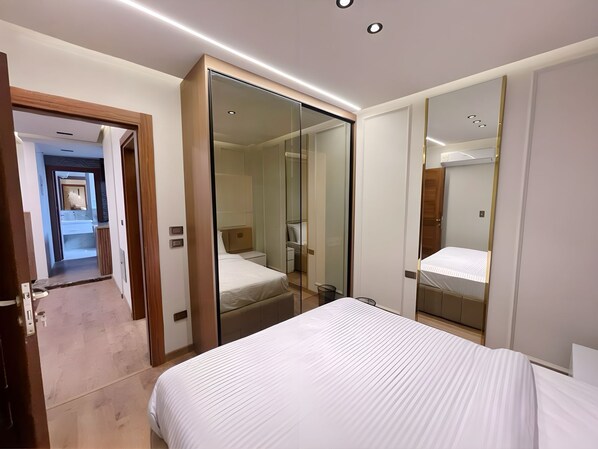Los habitaciones de este departamento disponen de aire acondicionado, pantuflas y secador de pelo. La cocina está dotada de refrigerador, placa de cocina y microondas.