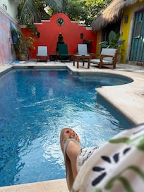 Sí, hay piscina en la propiedad.