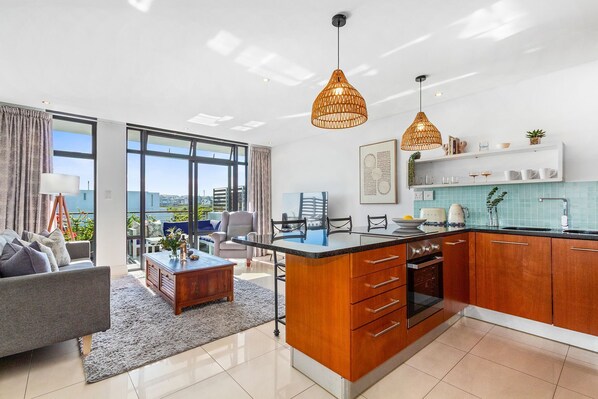 Las habitaciones disponen de balcón. Este departamento de Ciudad del Cabo ofrece acceso a wifi gratis. La cocina está dotada de refrigerador, placa de cocina, microondas y utensilios de cocina. Los baños están equipados con ducha.