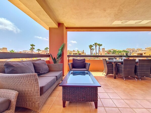 Penthouse, free wifi, private roof terrace, communal pool.