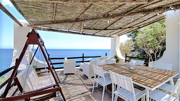 L’intérêt de la villa réside dans sa localisation à proximité de Castro Marina, à son accès privé à la mer et surtout à sa vue imprenable… pour le reste, je noterai la porte d’entrée, les portes de placard et les fenêtres qui ne fermaient pas bien ou difficile à ouvrir en raison des frottements sur le sol (j’ai adoré le scotch pour tenir les volets), les bruits de la discothèque voisine, les travaux dans la cuisine quand nous sommes arrivés, des équipements vétustes (table de la terrasse) et la grande surprise de la facture d’électricité à la fin de séjour sans aucun moyen de vérifier les compteurs à l’arrivée et au départ ….