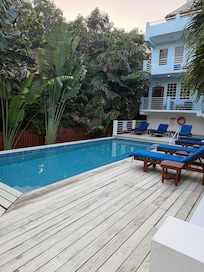 Sí, hay piscina en la propiedad.