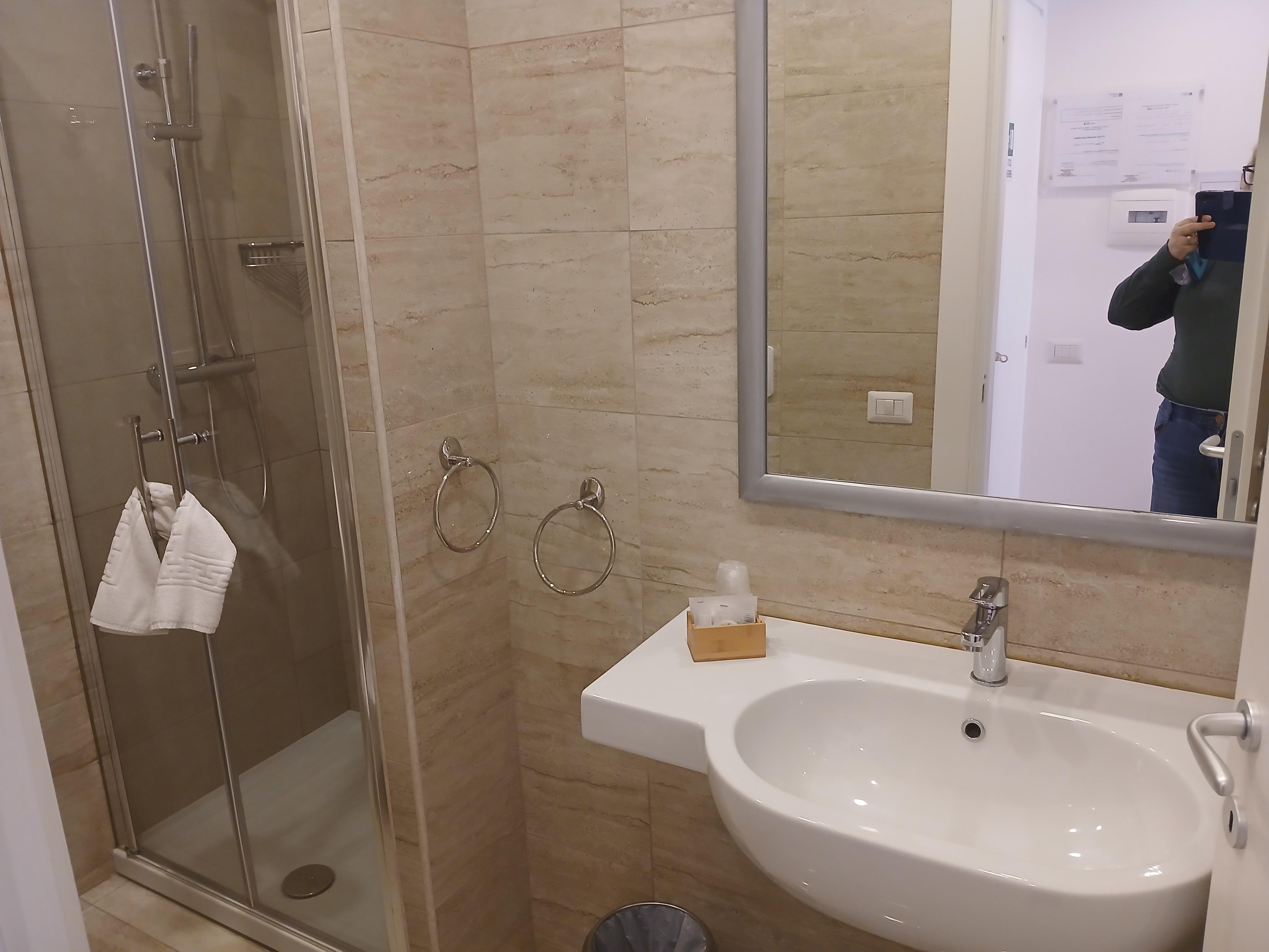 This amazing property, in an historic building, is charming and super clean. Our room had a large bathroom with small shower and a bidet. It’s an old building so walls are thin but aside from that it was a pleasure to stay here. We got tips on restaurants, host solved our charging