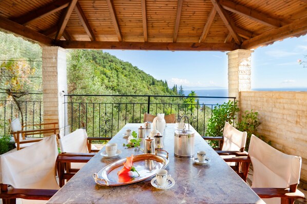 Los baños están equipados con bañera o ducha y secador de pelo. Esta villa de Corfú ofrece acceso a wifi gratis. Las habitaciones también incluyen cafetera/tetera y tabla de planchar con plancha. Se proporciona servicio de limpieza de forma limitada.