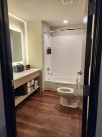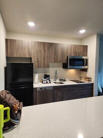 Stay was okay. Room was really spacious. Staff was friendly. I liked the full size shampoo, conditioner and body wash in the shower. Bed was firm. There were plenty of pillows and bedding was warm. Hotel location was good. Neighborhood felt safe.