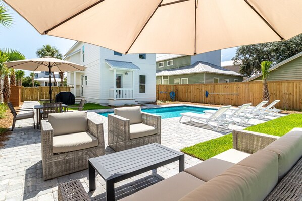 We really enjoyed bringing the family to Destin. The house was a short walk to the beach, and the two chairs and umbrella reserved there made it easy to always have a spot. The backyard heated pool was a great place to relax before dinner. Good location a short drive to shopping and dining. The house was clean and everything in good shape, and property management was very easy to communicate with before check in and while on site. Highly recommended!