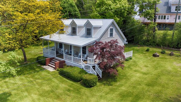House is cute and great location to wineries. We arrived 2 hours early. I texted the number I was given for communicating to see if there was any chance to access the property. They were not helpful and said they would have to verify it was ready. Tried again a half hour before check-in by dialing the main number. Fortunately the lady I spoke with was much more helpful than the person responding to the text. She was able to get us access. It was also clear that no one had stayed there recently and the unit had been ready for some time. When we arrived the outside chairs were gross and covered with cut grass that appeared to be stuck to them for a while so we had to clean them off. Property was clean for the most part, however, there was hair around the edge of the bath tub which is not acceptable. One of the beds in the summary paragraphs is listed incorrectly as king. This was only a full, maybe a queen, which was very disappointing. There were no directions for which of the three remotes to use for the television. I understand this is a lake view, but at night you may want to watch something on the television. Also, the TV is very small and the one in the upstairs bedroom is not bigger than 13" and could not get it to work with. I was extremely disappointed that someone was there to mow the lawn on Saturday morning at 9:30. We were only there from Thursday - Monday so it seems this should have been done before or after our stay, or at least after 11 AM.