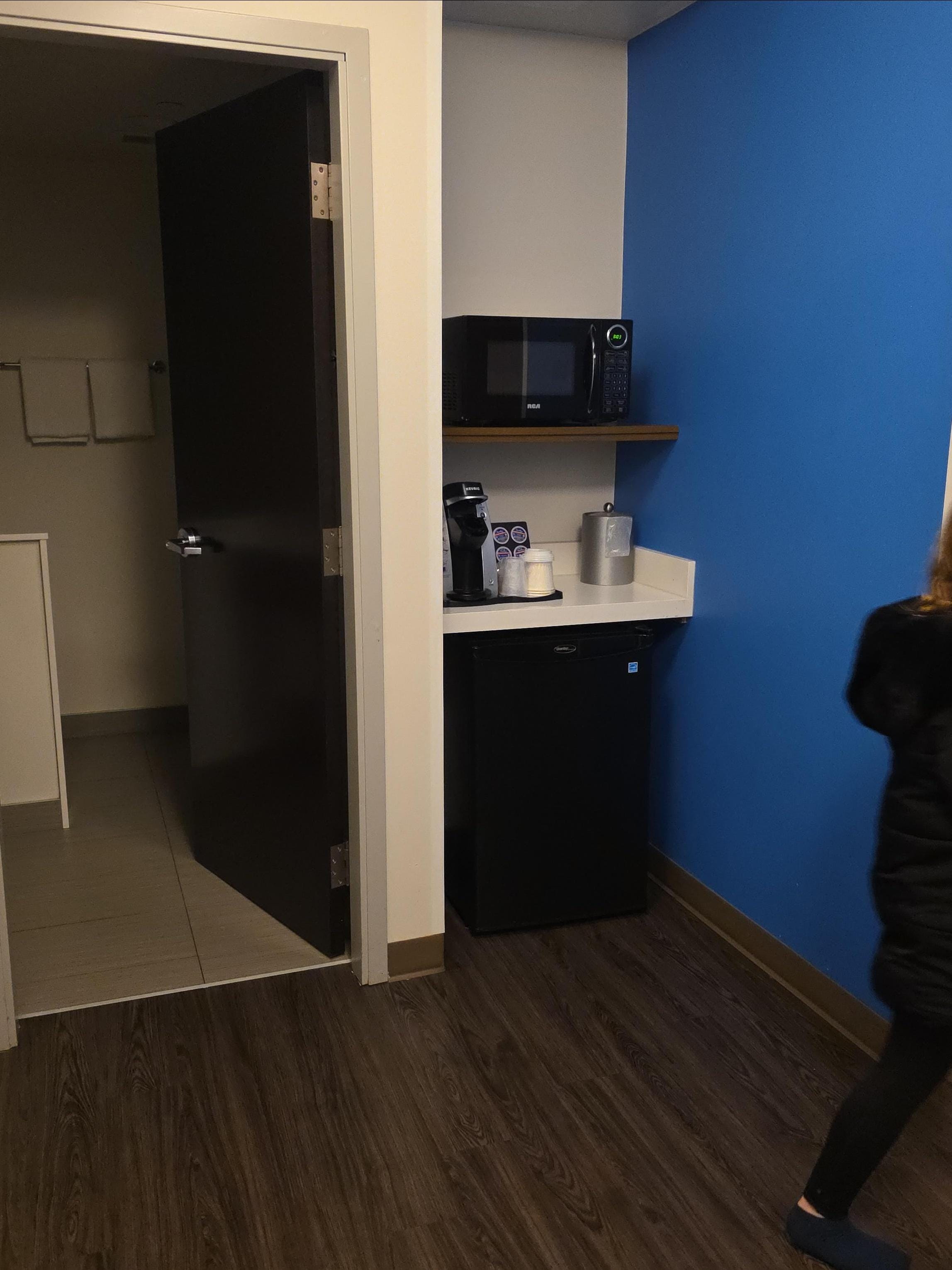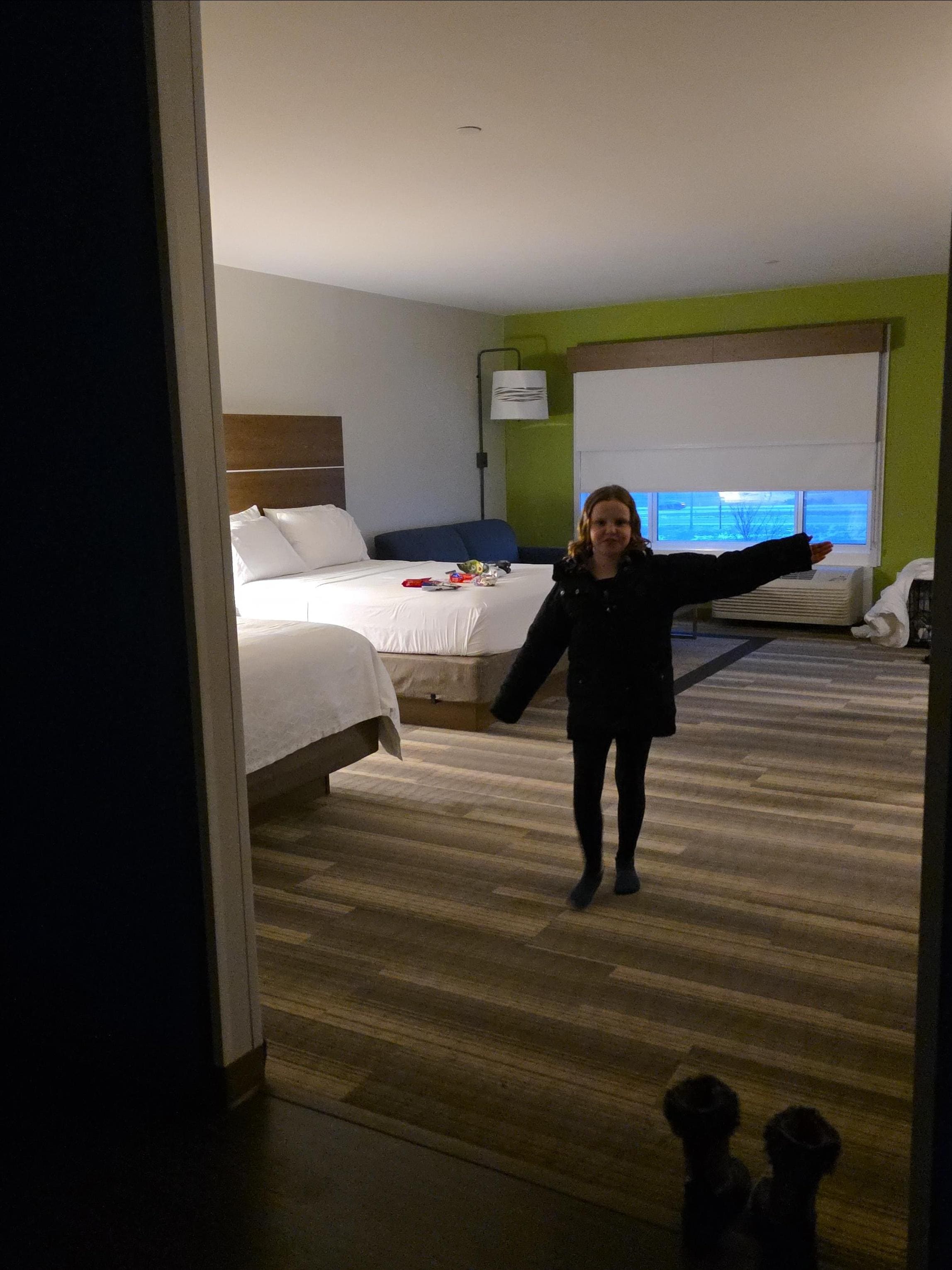 Friendly ,accomdating staff, i had my small dog with me and thst was no issue. My room was the biggest I've ever seen. It had 2 queen sized beds and 2 fold out couches. Walk in shower in the bathroom. The continental breakfast was everything you need. Just an all ariund great stay.