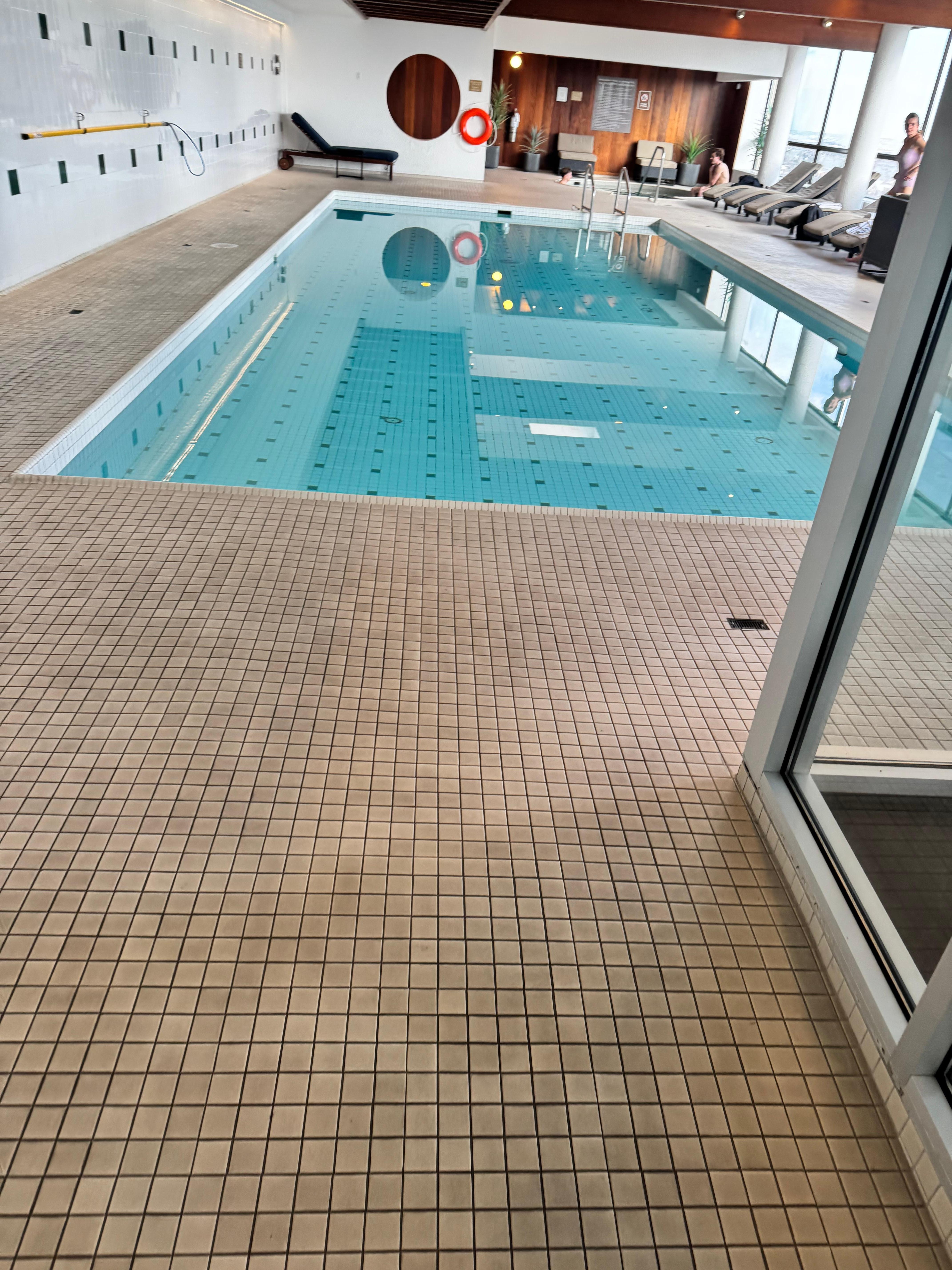 We stayed 2 nights and our room was comfy, clean and well set up. Even blackout curtains for sleep-ins. Bonus! We came for a hockey game and Roger’s Arena was only a 5 min walk on indoor above ground Pedway. So easy. Also, a 3 min walk in the othe direction to Irish bar that serves food until midnight. *****pool!