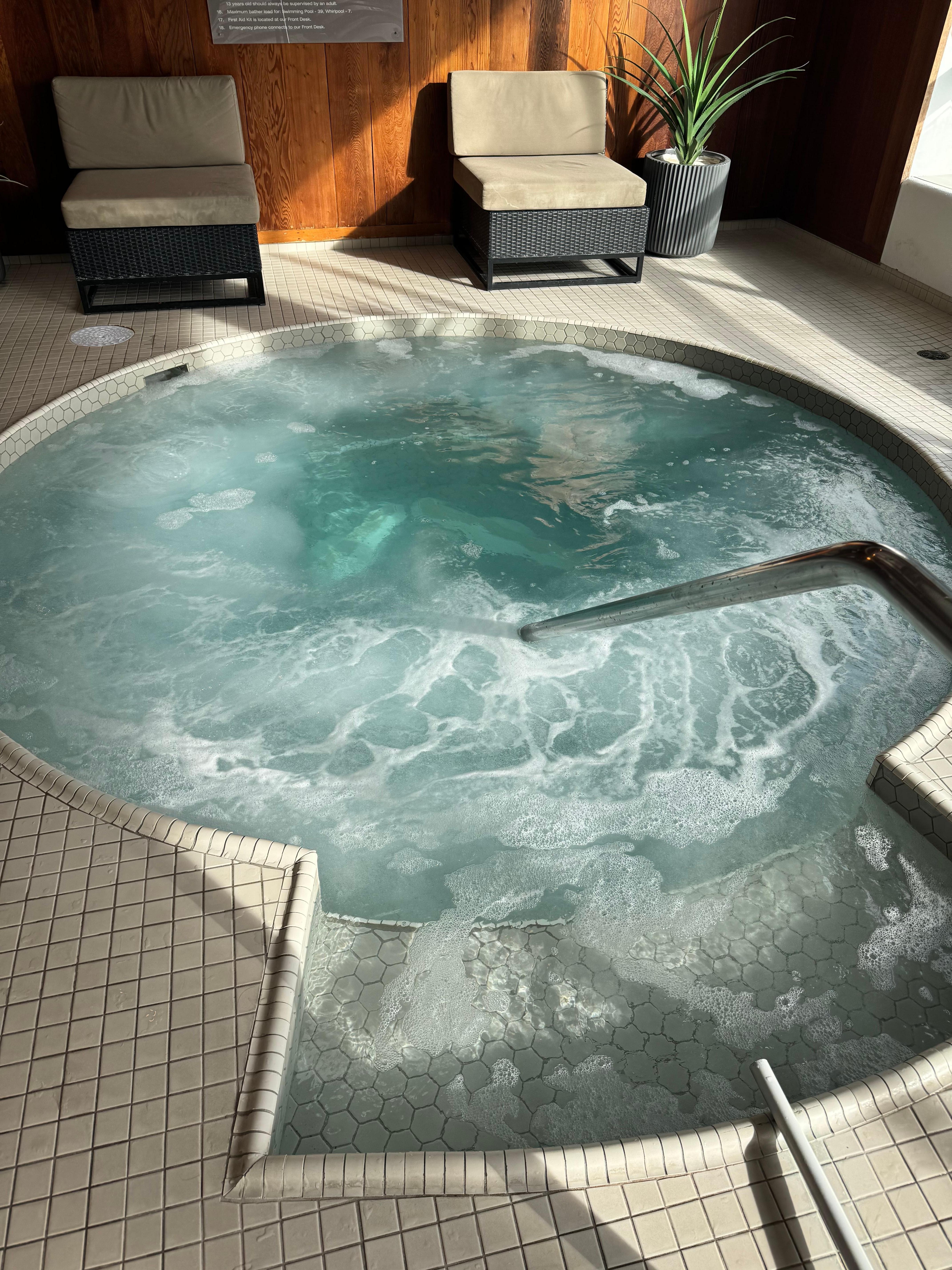Great top floor pool and hot tub. Great location