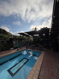 Sí, hay piscina en la propiedad.