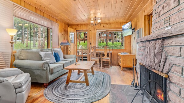 This property had considerable smoke damage as if there had been a recent fire inside the cabin. The managers apparently recognized that the smoke was overwhelming because we saw evidence that they'd just purchased room fans. Their explanation was that the people staying before us had had a fire in the fireplace. We've lived with fireplaces in several of our homes and know the difference between the smell of a working fireplace and what we experienced inside this property! (We considered going to a hotel to try to sleep or sleeping in our car but instead we threw open the windows that were operating and ran the fans at full blast, staying away until it was dark.) The bedding, upholstery, and towels were full of smoke; the kitchen cutlery draw was full of coffee grounds and food debris; there were opened food items in the kitchen cabinets and bedside table, under tables and under the cushions of the couch was more debris; there were dirty towels folded and stored with what should've been clean towels. The bedding was ragged, worn, and sloppy. The refrigerator froze our perishable foods. It felt like we were visiting a place that someone's grandparents had abandoned 40 years ago. It was a very uncomfortable experience overall and I would've been ashamed to invite a guest into such a poorly kept home.