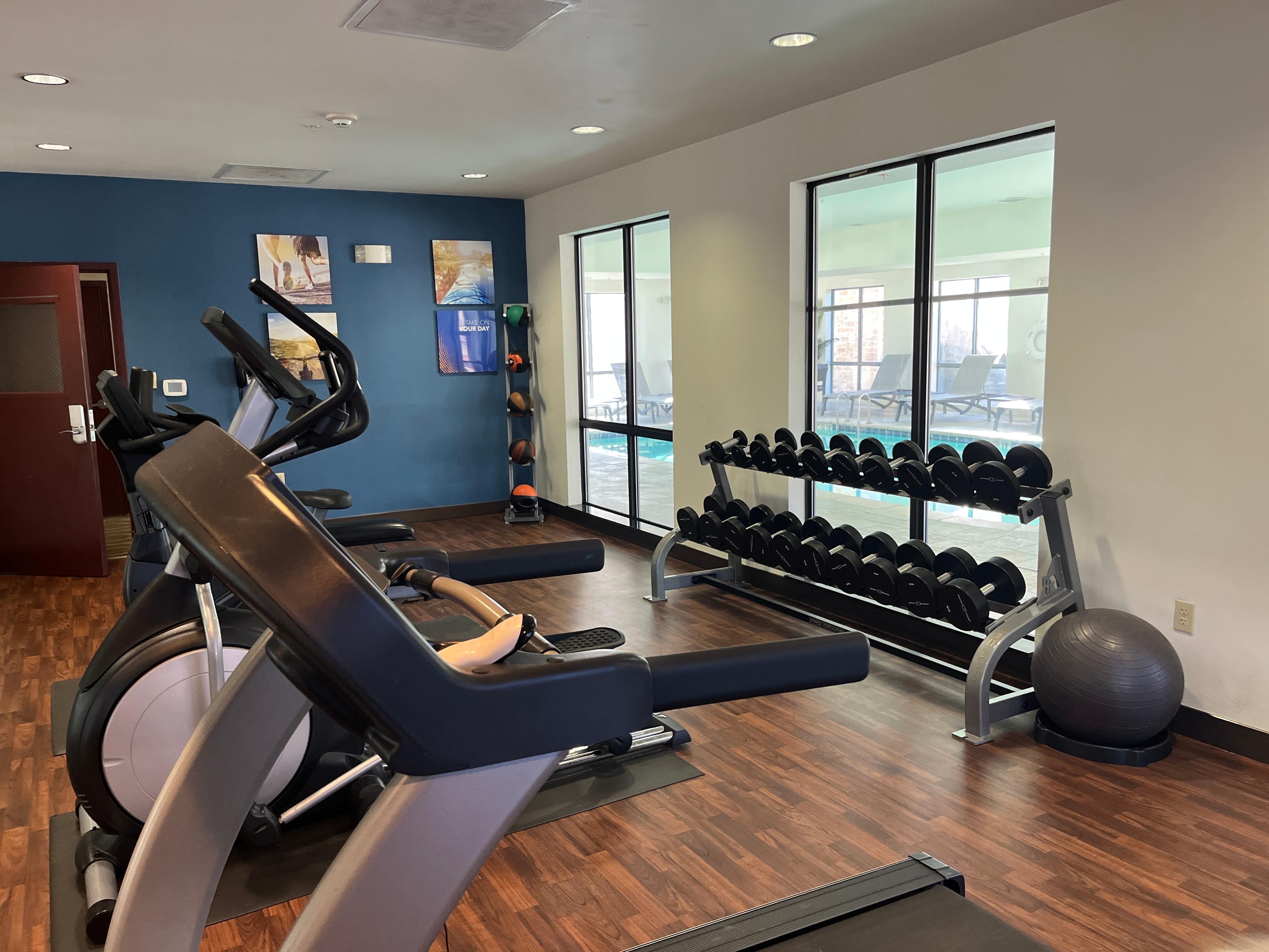 The fitness center is adequate for a basic ab/arm/and cardio workout though the stability ball needed a little more air. I didn’t use the pool, but other than a curiously strange looking piece of machinery, it was very clean and inviting. I wished I’d have brought my swimsuit as I passed it. I came down to take a photo of the gym area and I also noticed a well-lit meeting room as well.