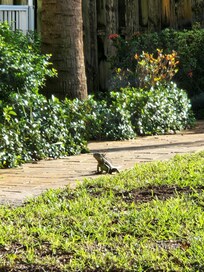 Do not stay here if you expect a safe, clean, or well-maintained vacation rental. This property was a complete letdown from arrival, with poor cleanliness, safety hazards, iguana infestation, and zero effective owner support, ruining our entire trip.The outdoor areas were filthy and unusable. The lawn was overrun with weeds and debris, far from the manicured yard advertised. Yard, rooftop, and pool zones swarmed with iguanas all day, leaving droppings everywhere that made surfaces slick and unhygienic—iguanas carry salmonella risks, turning relaxation into a health concern no guest should face.Indoors screamed neglect. One bedroom lacked a 2.5-foot blind section, killing privacy. The main bathroom tub grab bar dangled loose from the wall, a serious slip-and-fall hazard especially for families or elderly. Carpets and chairs bore obvious stains from prior use, while floors were unvacuumed with debris in corners and under furniture, making every room feel grimy and unready for guests. AC barely cooled for 10 hours, then failed completely for 5–7 more, spiking temps to 82F in the stuffy, unclean space.Owner communication was the final insult. Reports of these issues got excuses, endless photo requests, and empty promises—no quick fixes, no iguana trappers despite commitments. Problems persisted unresolved, proving total disregard for guest safety and comfort. Steer clear—this misrepresented disaster isn't worth the risk.