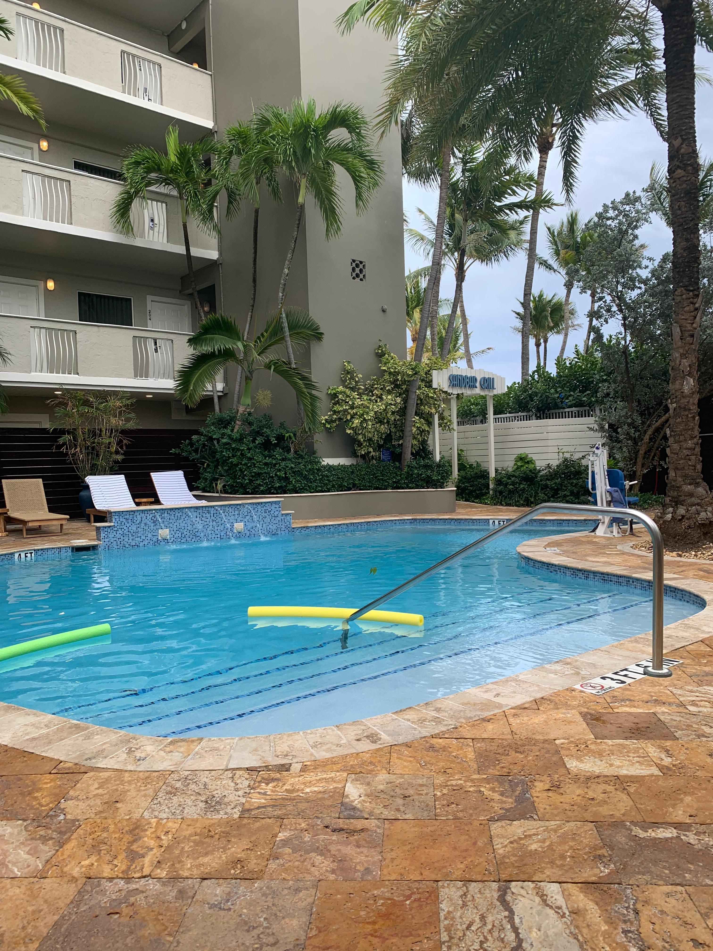 We love this property. It was our first time visiting Fort Lauderdale and we had to decide on where to stay. We chose this property because it was on the beach with an ocean view. The room was great. It had a separate living area and also a full refrigerator. The only feedback I would give is the bathroom is a little small and outdated. If there could be a little more space in the bathroom and maybe a soaking tub that would really add Value. Overall, we thought it was awesome and we would definitely stay here again. We would probably rather that the resort Phoebe included in the overall price instead of paying separately at the end, but the staff were super friendly. The restaurant was good and the beach was wonderful.