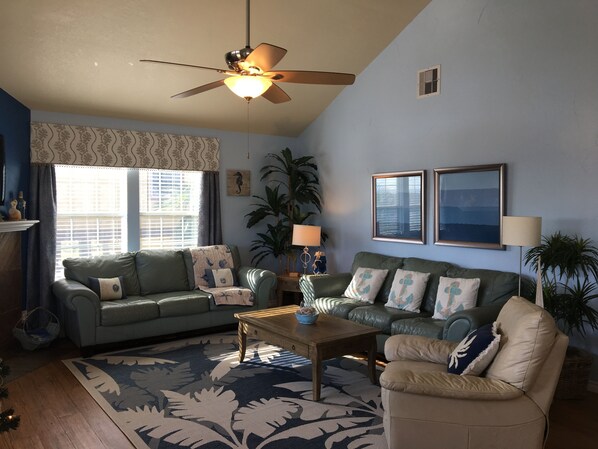 this house has so many great places to hang out with the family and short walk to the beach.