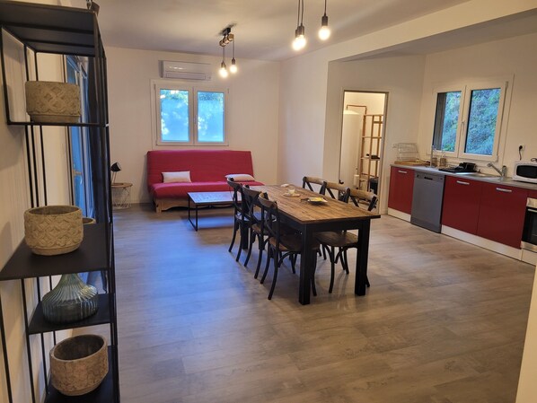 Wir, eine Familie mit 3 Kindern und Hund, waren eine Woche im Haus. Die Ausstattung war für uns sehr gut. Wir hatten genug Platz durch die drei Schlafzimmer und die beiden Bädern. Die Ausstattung entspricht der Beschreibung. Im Wohn/Essbereich mit der Küche befindet sich die Klimaanlage, so dass wir trotz der hohen Temperaturen ein gutes Klima dort hatten. Insgesamt haben wir uns sehr wohl gefühlt und auch die Kommunikation mit der Verantwortlichen lief gut und unkompliziert.