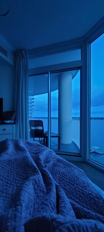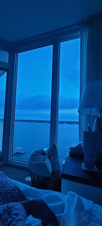 My favorite part was the views from the bedroom and living room! We kept our curtains open in the bedroom the whole week so we could go to sleep and wake up to those beautiful views of the bay! Besides that, the condo met our needs. Check-in info was sent to us the day before, so check-in was a breeze. The kitchen was fully stocked with pots/pans, glasses, plates, bowls, silverware, as well as toaster, toaster oven, coffee maker, and other small appliance that we didn't use. There was a pantry right beside the refrigerator that we used to put all of our groceries. There is a wet bar with an ice machine, which was an added bonus. Laundry room with washer/dryer and beach wagon, umbrella, and sand toys was a huge plus for us too. The beds in all of the bedrooms were comfortable. The best part was the private balcony off 2 bedrooms and living room. There was seating out there too, which made it another living space where we spent a lot of time. Overall, we enjoyed the space and were sad to leave!