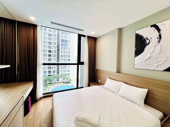Este apart-hotel de Hanói ofrece acceso a wifi gratis con una velocidad de 50 Mbps o más. Hay una Smart TV de 50 pulgadas con canales por cable premium. Las habitaciones también incluyen cafetera/tetera y arrocera. Es posible solicitar ropa de cama hipoalergénica, cambio de toallas y cambio de sábanas. Se ofrece servicio nocturno de cortesía y servicio de limpieza previa solicitud.