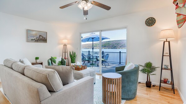 Casa de vacaciones frente al lago con cocina y balcón