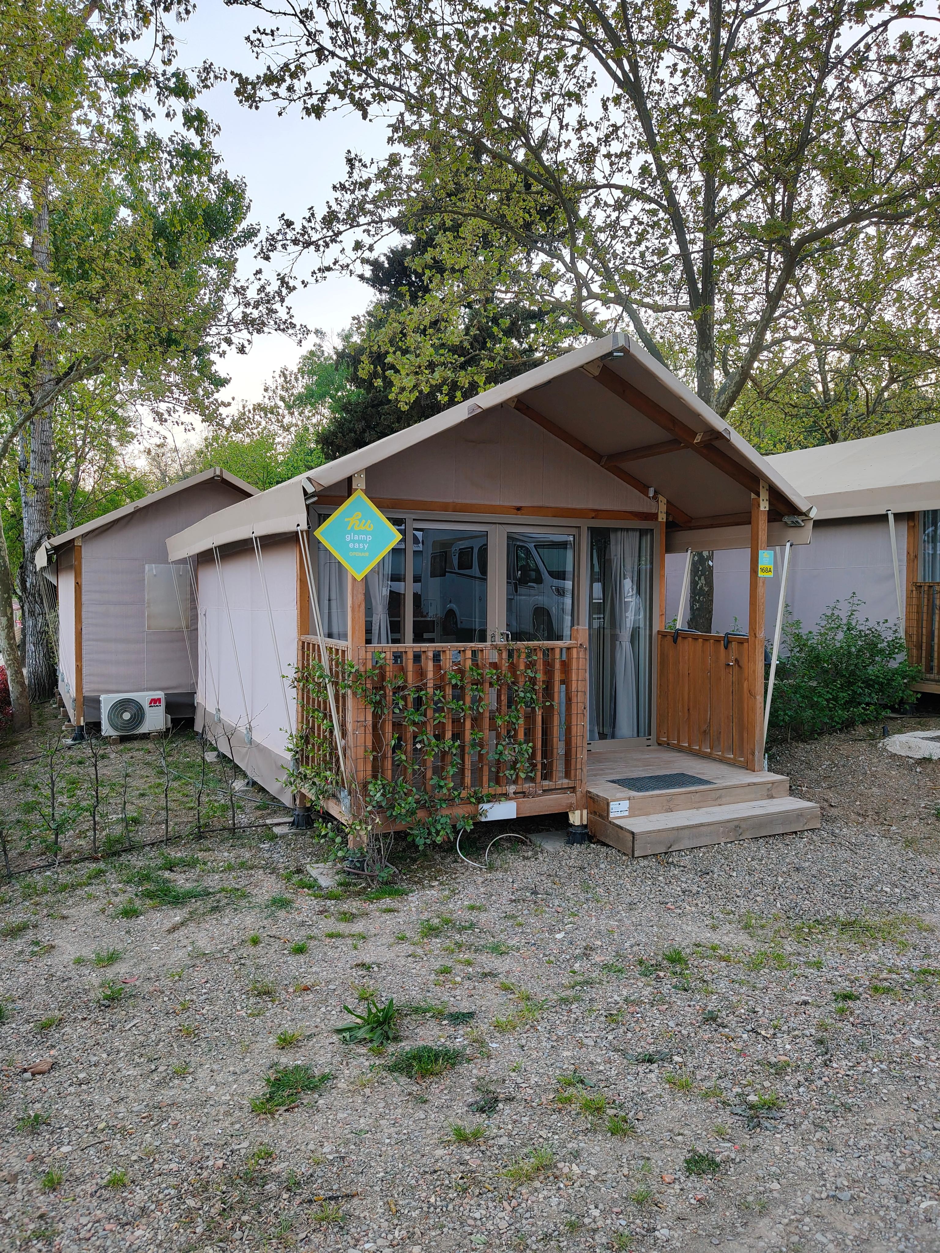 Die Bungalows mit schwerer Zeltplane und Bad sind genial durchdacht, geräumig und komfortabel. Bei schlechtem.Wetter war das eine gute Alternative zum Zelt.
