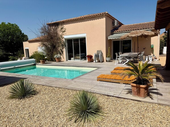 - Muebles de exterior, un área de parrillas y toallas de playa