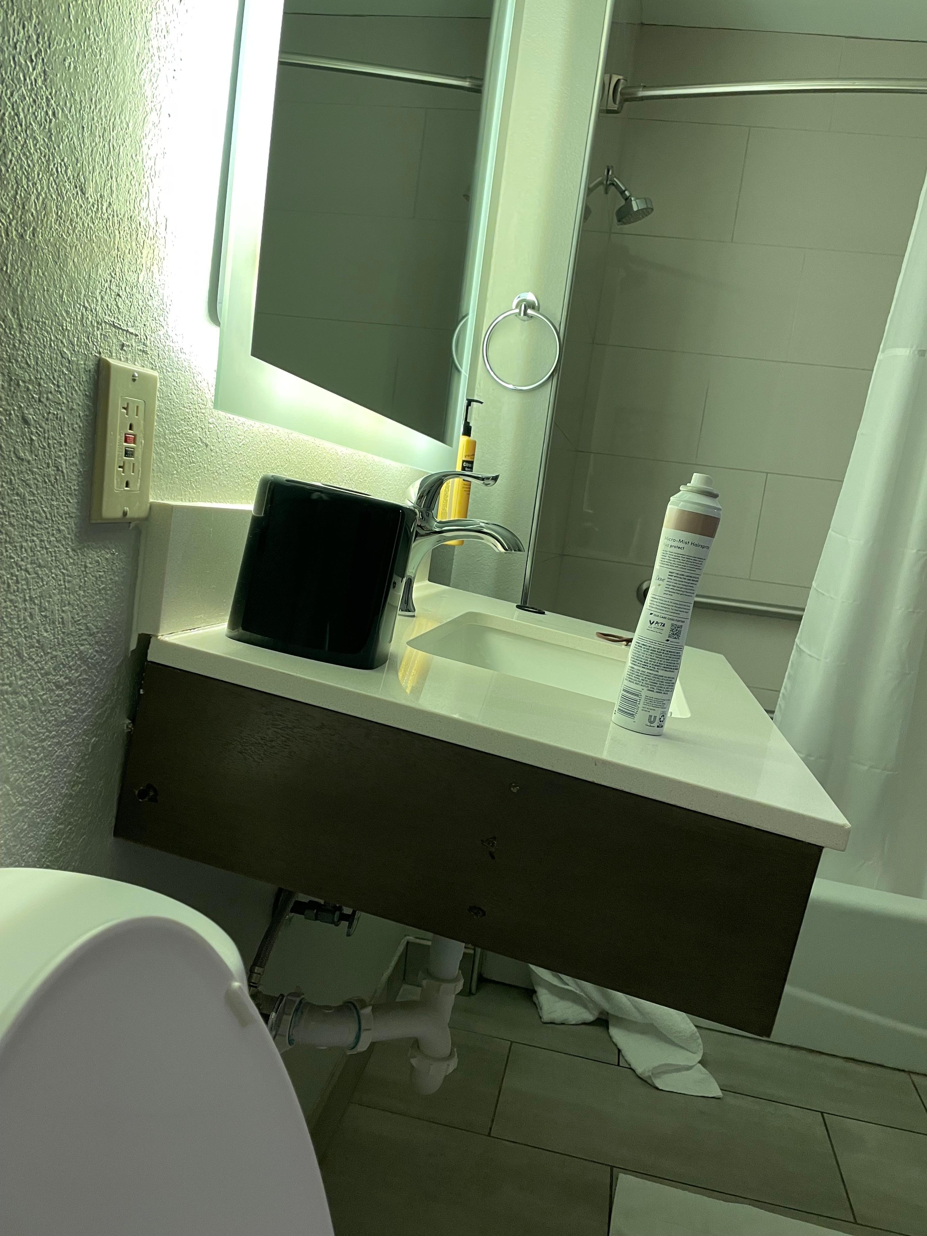 Bathroom floor near corners and around toilet were filthy. There was no hand soap nor any in the shower container. Didn’t have time to notice before staying as we checked in and left for a wedding and returned after midnight. No one at counter to request soap. Luckily we bring our own for emergencies. Mattresses need replacing. The toppers are lumpy and very uncomfortable.
