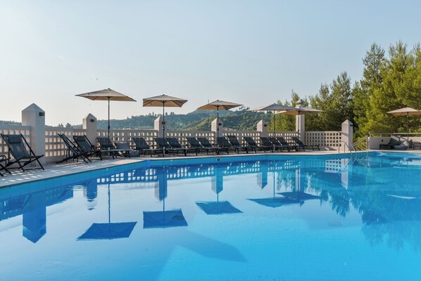 Die Zimmer innen sind gut da die renoviert wurden. Das Swimmingpool ist nicht zumutbar kein Mensch war da schwimmen da es dringend Renovierungsdürftig und schmutzig ist. Die Fliesen seitlich haben starke Ablagerungen. Diesen Swimmingpool könnte man aktuell höchstens als Teich benutzen! Das Hotel hat genau 5 Parkplätze nicht mehr. Sonst kann man neben dem Hotel auf ein sehr steilen Acker parken der Boden stark uneben ist. Eingeschränkte Personen können da nicht parken ist zu gefährlich zu stürzen. Frühstück ist einseitig kleine Auswahl jeden Tag das gleiche. Getränke sehr schlecht. Pulverkaffe und alle Säfte auch Pulver mit Wasser gemischt vom Automaten. Im Essensbereich gibt es keine Klimaanlage aber viele Ventilatoren wo hin und her blasen. Ventilatoren haben im Hotel nichts zu suchen vor allem beim essen. Abendessen war gut. Nur die Nachspeisen könnten vielfältiger sein. Preis Leistung war es für uns das schlechteste Hotel was wir besucht haben.