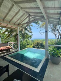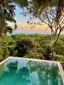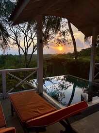 I had a plunge pool room which was worth the extra. Relaxing out there, with an endless view of the jungle, the ocean in the distance, and monkeys leaping from the trees is pure heaven. The monkeys even enjoyed coconuts above my sun lounger one morning.