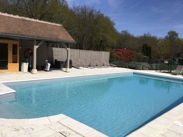 La piscina de temporada abre de mayo a octubre.