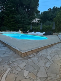 Sí, hay piscina en la propiedad.