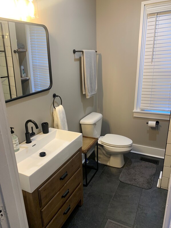 Historic Downtown Open Floor Plan with King & Queen Beds, Kitchen & Laundry.