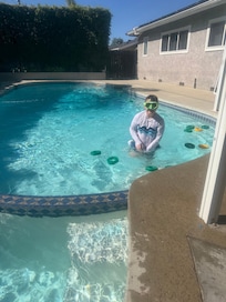 Sí, hay piscina en la propiedad.