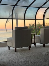 It’s a two-story home. On the first level, there’s a living room, family room, dining area, kitchen, washer and dryer, and a full bathroom. Guests are asked to remove their shoes because the carpet is white.,The host also provides slippers in a basket by the door if needed. The downstairs area was fairly clean overall—though the microwave and oven could’ve been a bit cleaner, it didn’t bother me since we didn’t end up using the kitchen appliances anyway.The oceanfront views from both the living room and the master bedroom upstairs are absolutely stunning—exactly what I was hoping for when I booked this place! Upstairs, there are two full bathrooms, two bedrooms, and a large walk-in closet.Note: The home is listed as a three-bedroom, but the third “bedroom” is actually a loft connected to the second bedroom. It’s not a big deal, but in real estate terms, it would be considered a two-bedroom. The first bedroom has one queen bed and two twins.The loft area above it has a queen bed—it’s basically a finished section of the attic that’s been converted into extra sleeping space.The walk-in closet has extra linen, a toddler bed, an iron, and an ironing board.The master bedroom features a queen-size bed, a sitting area, and large windows overlooking the ocean—just breathtaking. Truly, the views are what make this home special. Great host and stay highly recommended!