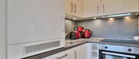 Los baños están equipados con ducha. Este departamento de Lübeck ofrece acceso a wifi gratis.