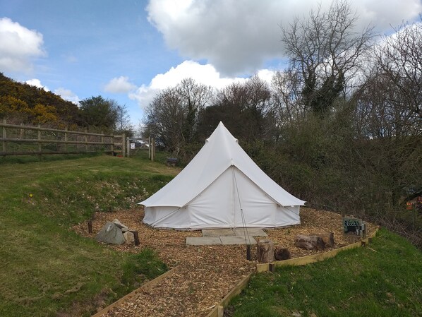Stoat bell tent in stunning orchard, minutes from Lyme Regis & Jurassic Coast