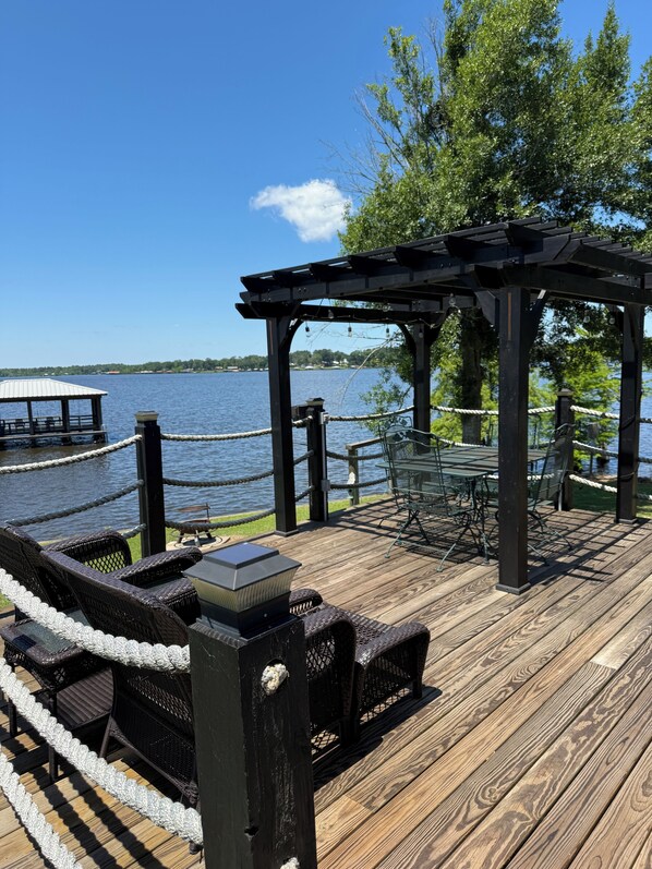 Casa de vacaciones frente al lago con cocina y patio