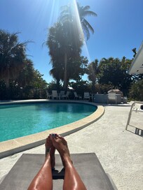 This house is perfectly located close to restaurants and shopping plazas. You have only a 5 minute drive or 15 to 20 minute walk. It is in a quiet neighborhood with a beautiful canal view. We had dolphins visit as well as we saw the burrowing owls when walking through the neighborhood. It is a well kept older home with two separate buildings with one bedroom/ bathroom in the main building with kitchen, dining and living room and 3 bedrooms in the attached building that worked well with a family of 6 and 2 grandparents each having their separate buildings at night. The pool deck area is large and nice to use for sun bathing and swimming. Our only complaint was how cold the pool was and it would not stay heated but the cold weather at night was the reason it would not stay heated as we hoped. A pool cover might help during colder months. The host Deborah was very helpful and accommodating during our 2 week stay. We enjoyed South Collier Beach better than Tigertail because the public parking 10/day was a shorter walk with easy access for strollers and carts. They also have a restaurant Sunset Grille on the beach that allows you to use restrooms and order favorite frozen drinks. This was our first stay on Marco as we usually do an all inclusive vacation. We plan to go back.