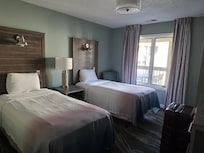 Los baños están equipados con bañera o ducha con bañera de hidromasaje y secador de pelo. Las habitaciones también incluyen cafetera/tetera y tabla de planchar con plancha.