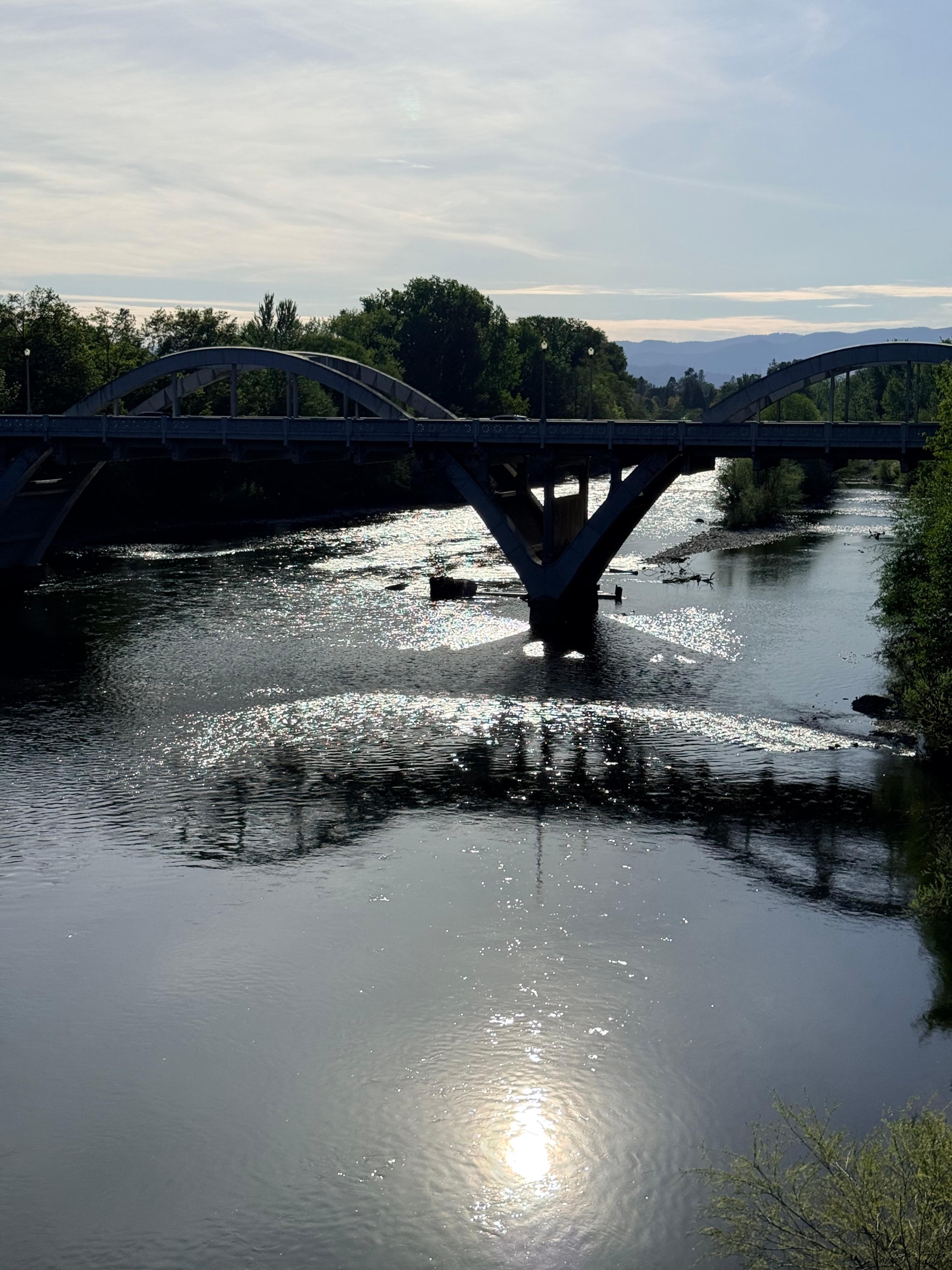 Perfect location. Park across the bridge is heavenly and my dog and I just loved it. Our deck sat perfectly over the Rogue River! Thank you!