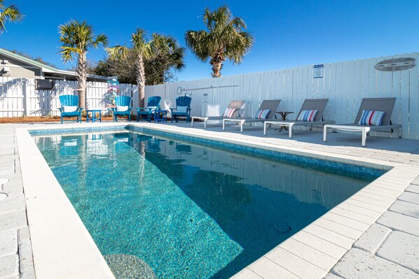 Private, Heated Pool just steps to the Miramar Public Beach Access!