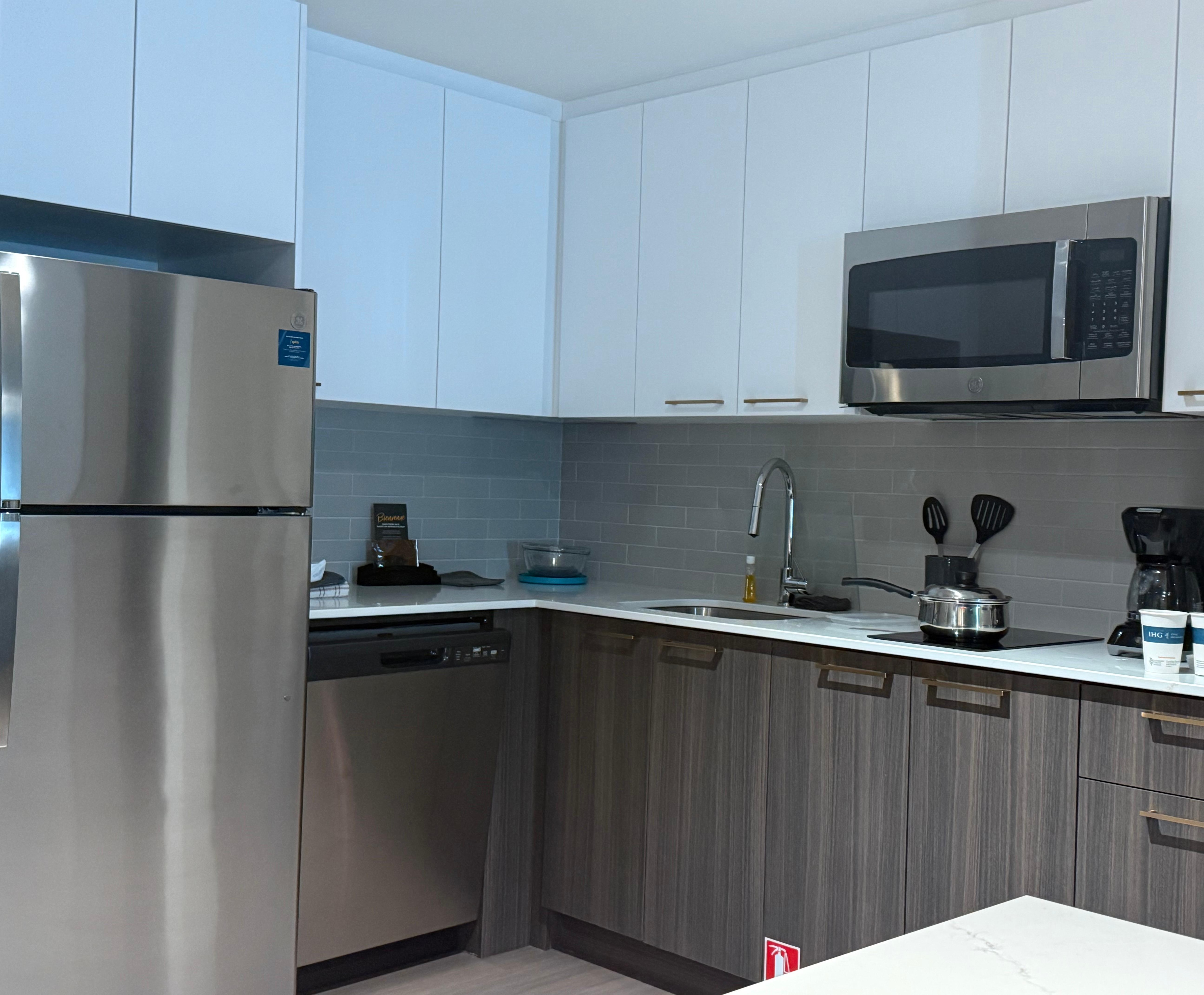 Hotel is Super clean, which made our stay really comfy. We came back from skiing, and our ski clothes got soaked in the rain. Luckily, the hotel offers complimentary laundry so everything was dry and fresh. The kitchen was great for whipping up a quick late night snack. The staff were really friendly, and the breakfast buffet was simple but tasty. Happy hour was a pleasant surprise. Loved our stay!